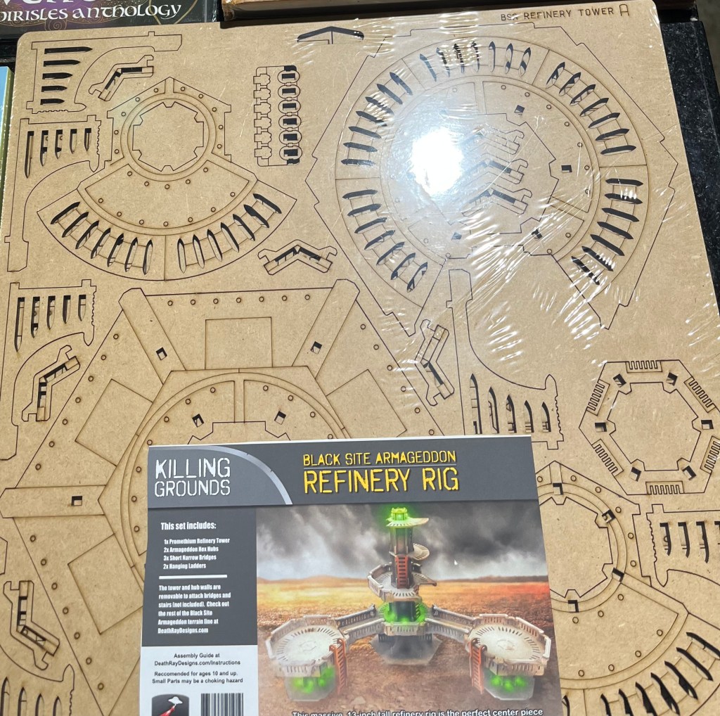 I was looking for some interesting terrain – specifically something oil rig-like in 28mm, and ordered myself one of Death Ray Design Refinery kits. It arrived the other day, and I got right into it. TLDR: Amazing kit, quickly assembled (I got through it and painted it yesterday in a few easy hours), and looks great on the table.