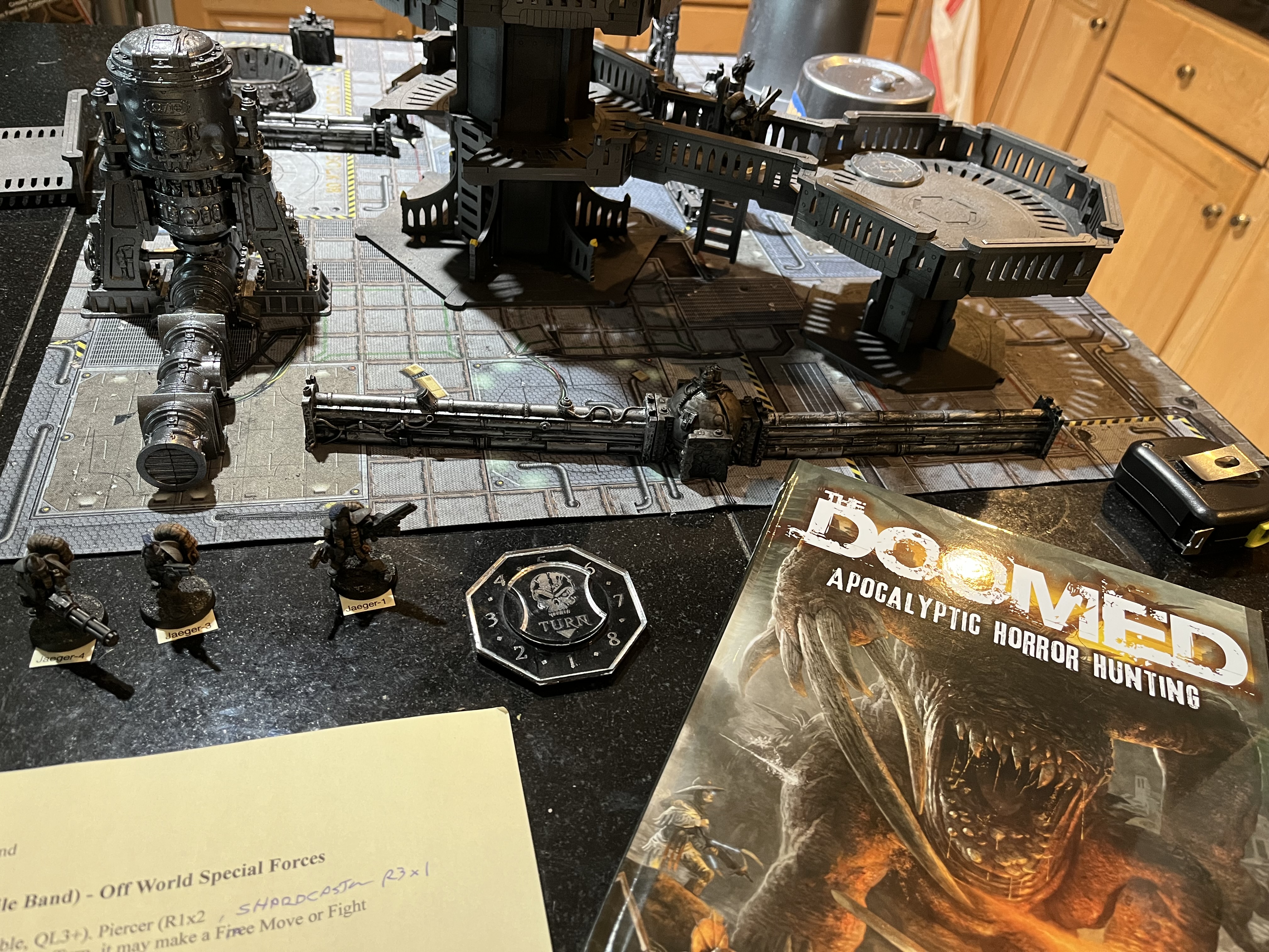 So far, really pleased with The Doomed. It scales for a 2×2 or 3×3 table, presents a nice, colorful, fun book to read, and fun game to play on the table. Looking forward to some more games.